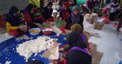 Setelah melakukan konsolidasi Tim Dapur umum ini berbagi tugas menggalang logistik, sebagian memasak serta sebagian lagi membungkus nasi dan air mineral