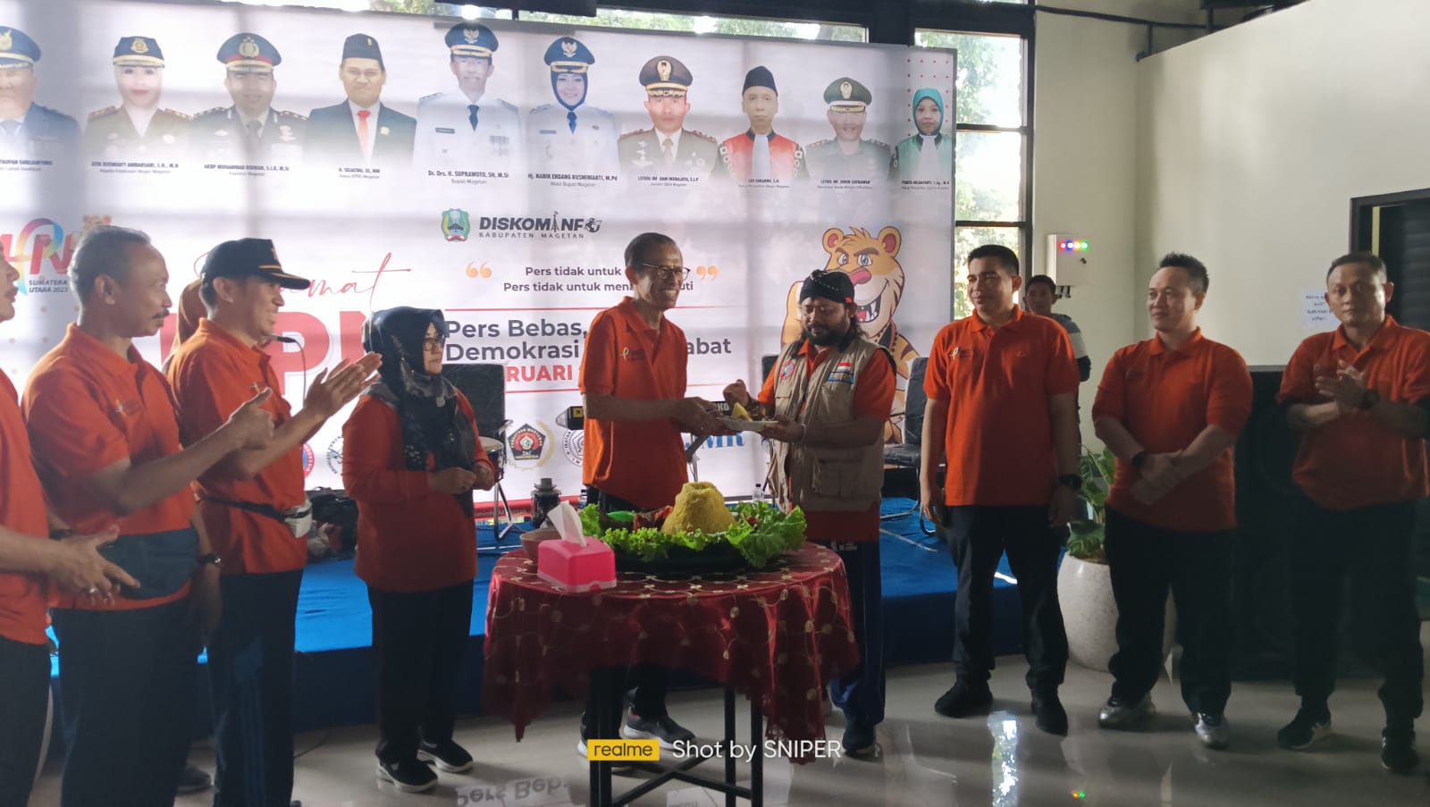 Bupati Magetan Suprawoto dalam sambutannya mengucapkan Selamat Hari Pers Nasional kepada seluruh insan Pers dimanapun berada. Semoga pers di Indonesia semakin profesional dalam menjalankan tugasnya.