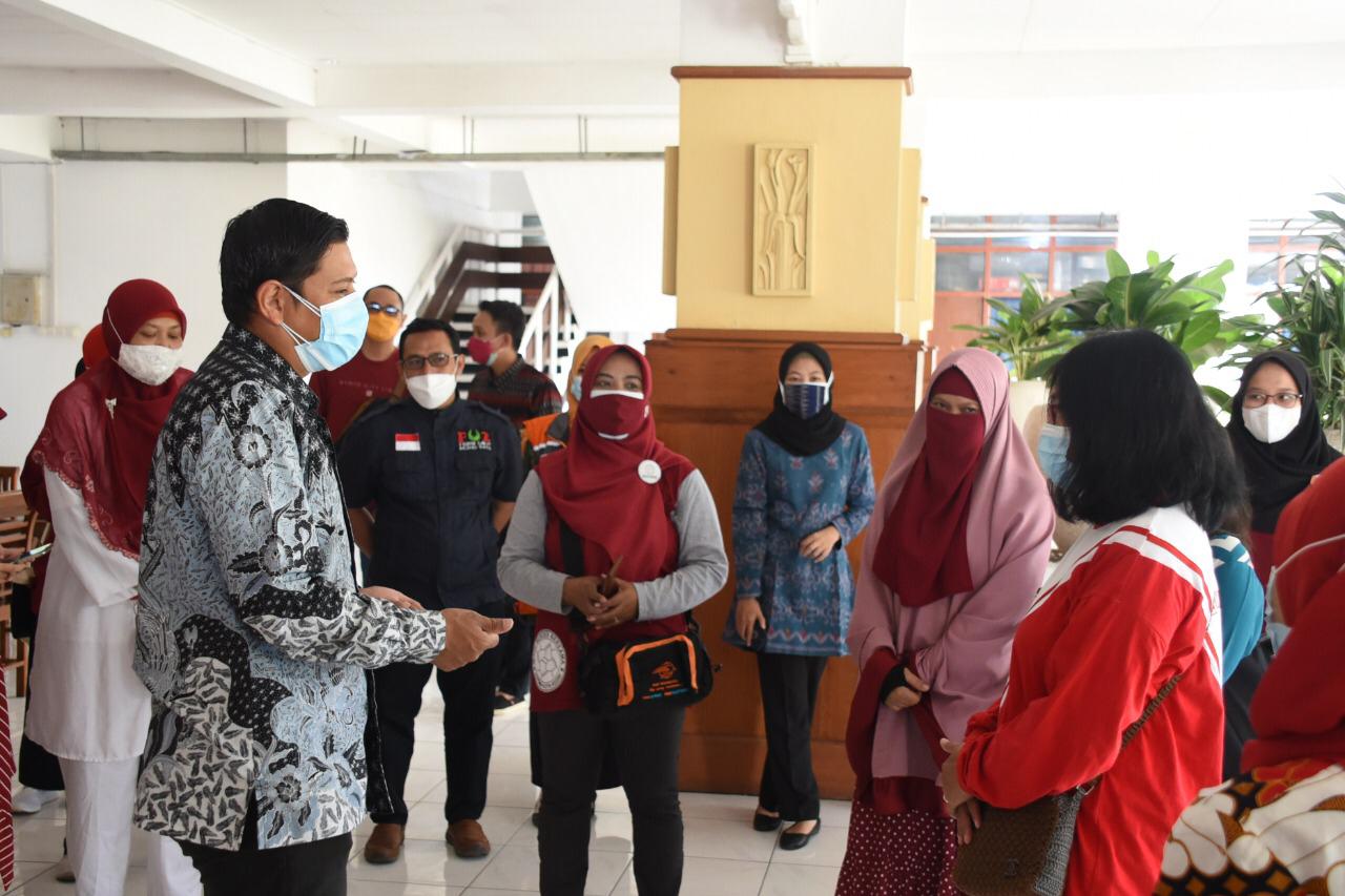 KEDIRI- Wali Kota Kediri Abdullah Abu Bakar menerima bantuan dari para pelaku UMKM Kota Kediri, tepat di Hari UMKM Nasional, Kamis (12/8). Para pelaku UMKM Kota Kediri ini berinisiatif membantu warga Kota Kediri yang sedang melakukan isolasi mandiri yang disalurkan melalui program Batman (Bantuan Isoman) Kota Kediri. Kegiatan mereka tersebut tergabung dalam suatu gerakan berbagi yaitu Gerakan UKM/IKM Kota Kediri Berbagi.