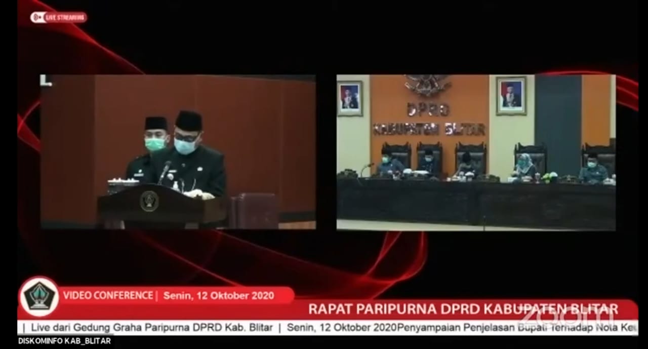 Nampak hadir juga Forkopimda atau yang mewakili, rapat paripurna ini juga digelar secara virtual diikuti oleh jajaran OPD Pemkab Blitar.