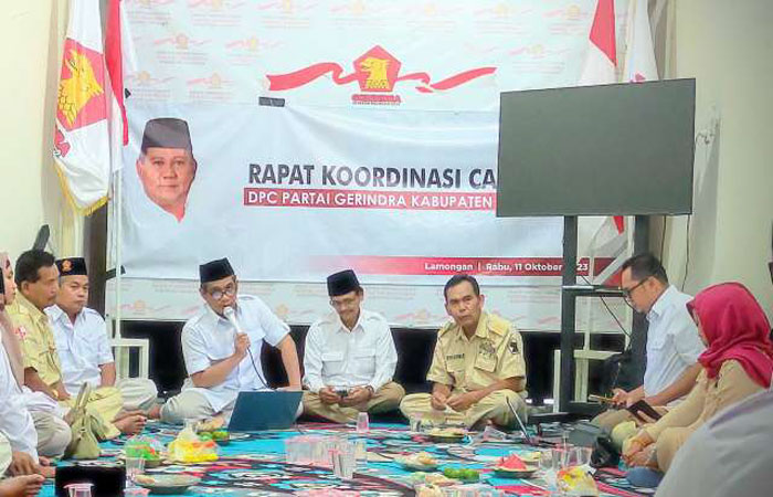 LAMONGAN | Siberindo.co – Menjelang pendaftaran Calon Presiden dan Wakil Presiden (Capres/Cawapres) pada Pemilu Tahun 2024 mendatang, Dewan Pimpinan Cabang (DPC) Partai Gerakan Indonesia Raya (Gerindra ) Kabupaten Lamongan menggelar Rapat Koordinasi Cabang (Rakorcab) di kantor DPC, Rabu (11/10/2023)