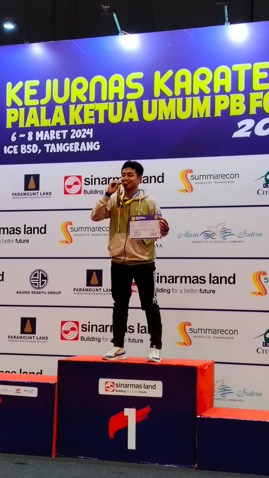 Sebelumnya, Ketum FORKI Sidoarjo, H. Awan Hendrawan SE MH, mengatakan, kontingen Jatim berhasil meraih 3 medali emas, 5 perak dan 6 perunggu. Kebetulan, dua medali emas disumbangkan Sabrina Aulia kelas Cadet 61 Pi dan Varial Alexandro KU Yunior +76 Pa dari FORKI Sidoarjo.