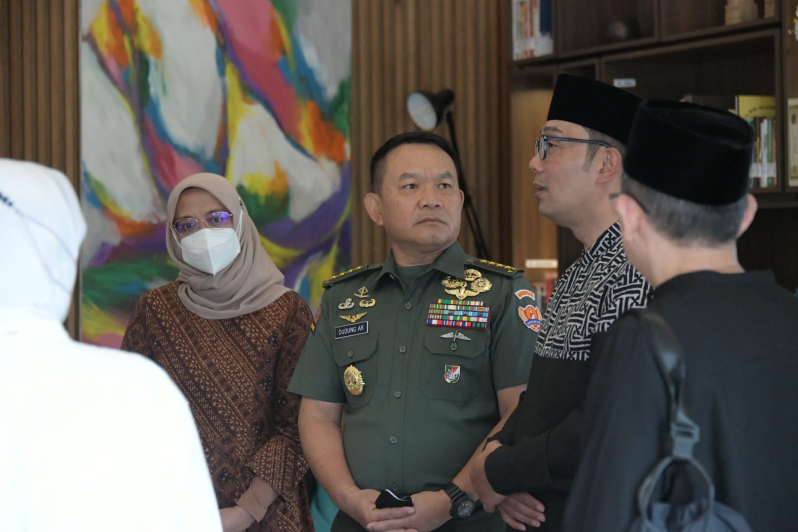 JAKARTA – Kepala Staf Angkatan Darat (Kasad) Jenderal TNI Dr. Dudung Abdurachman, S.E., M.M, atas nama Keluarga Besar TNI AD menyampaikan ucapan bela sungkawa atas berpulangnya Almarhum Emmeril Khan Mumtadz atau akrab dipanggil Eril saat takziyah di Gedung Pakuan Bandung, Senin (13/6/2022). Almarhum merupakan putra Gubernur Jawa Barat, Ridwan Kamil.