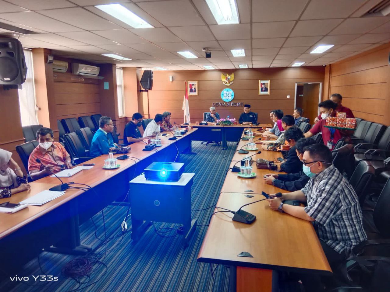 Ketua Prof Azyumardi Azra tampak antusias dan bersemangat saat menerima delegasi SMSI beraudensi. Menurut Azyumardi Azra, Dewan Pers periode 2022-2025 yang belum lama ini dilantik, berusaha untuk terus meningkatkan performa dalam memverifikasi media massa, termasuk media siber (online).