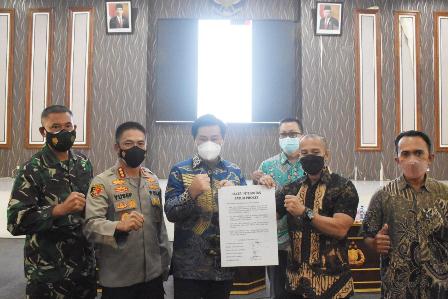Dalam sambutannya, Kasrem 084/BJ menyampaikan, “Pada intinya kita tetap saling berkoordinasi bersama forkopimda terkait penanganan Covid-19, meskipun turun level jadi Zona Kuning PPKM Level 3, kita harus tetap memperhatikan Prokes, dan jangan sampai lengah.