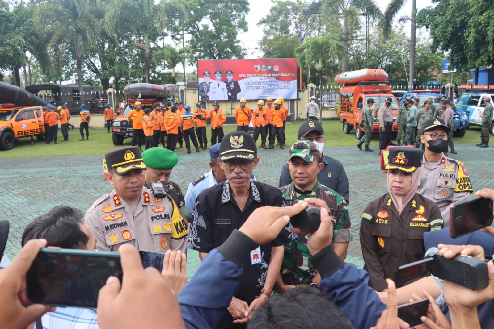 Bupati Magetan Suprawoto, memimpin langsung Apel Gelar Pasukan Siaga Bencana, dan diikuti oleh jajaran Forkopimda dan stakeholder dari masing-masing klaster. Diantaranya, Bidang Keamanan, Klaster Pencarian dan Penyelamatan, Klaster Kesehatan, Klaster Logistik, Klaster Pengungsian dan Perlindungan, serta Klaster Sarpras.