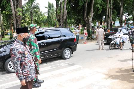 SUMENEP – Komandan Kodim (Dandim) 0827/Sumenep Letkol Inf Nur Cholis.A.Md. bersama Forum Koordinasi Pimpinan Daerah (Forkopimda) Sumenep melaksanakan kegiatan operasi Yustisi sosialisasi dan penegakan disiplin Inpres No 6 Tahun 2020. Kegiatan diawali dengan apel bersama di depan Markas Komando Distrik Militer (Makodim) 0827/Sumenep.