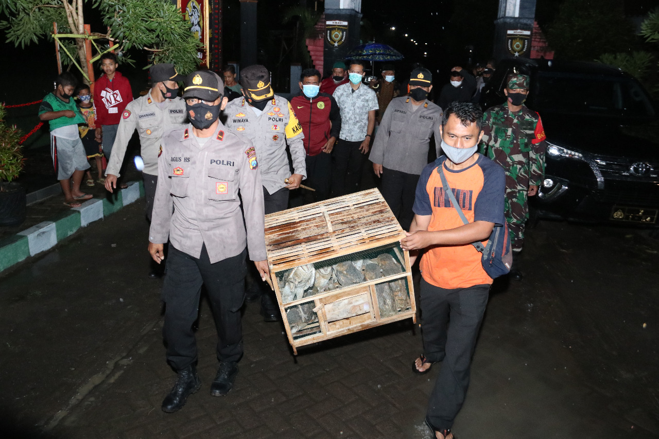 NGAWI – Upaya menekan penggunaan jebakan tikus beraliran listrik di sawah, Kapolres Ngawi AKBP I Wayan Winaya, bersama Kapolsek Geneng, melepas sepuluh Burung Hantu jenis Tyto Alba di area persawahan, tepatnya di Desa Sidorejo, Kecamatan Geneng, Kabupaten Ngawi Jawa Timur. Minggu malam (14/2/2021).