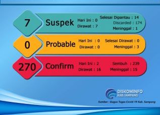 Dari jumlah 270 itu masih dalam perawatan 16 pasien, dinyatakan sembuh 239 orang dan meninggal dunia 15 orang.