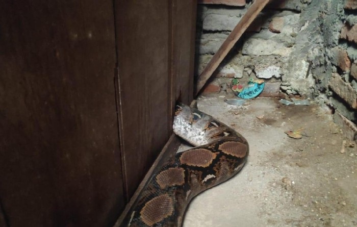 Petugas membutuhkan waktu 30 menit untuk mengevakuasi ular sanca itu. Mereka harus membongkar lemari warga.