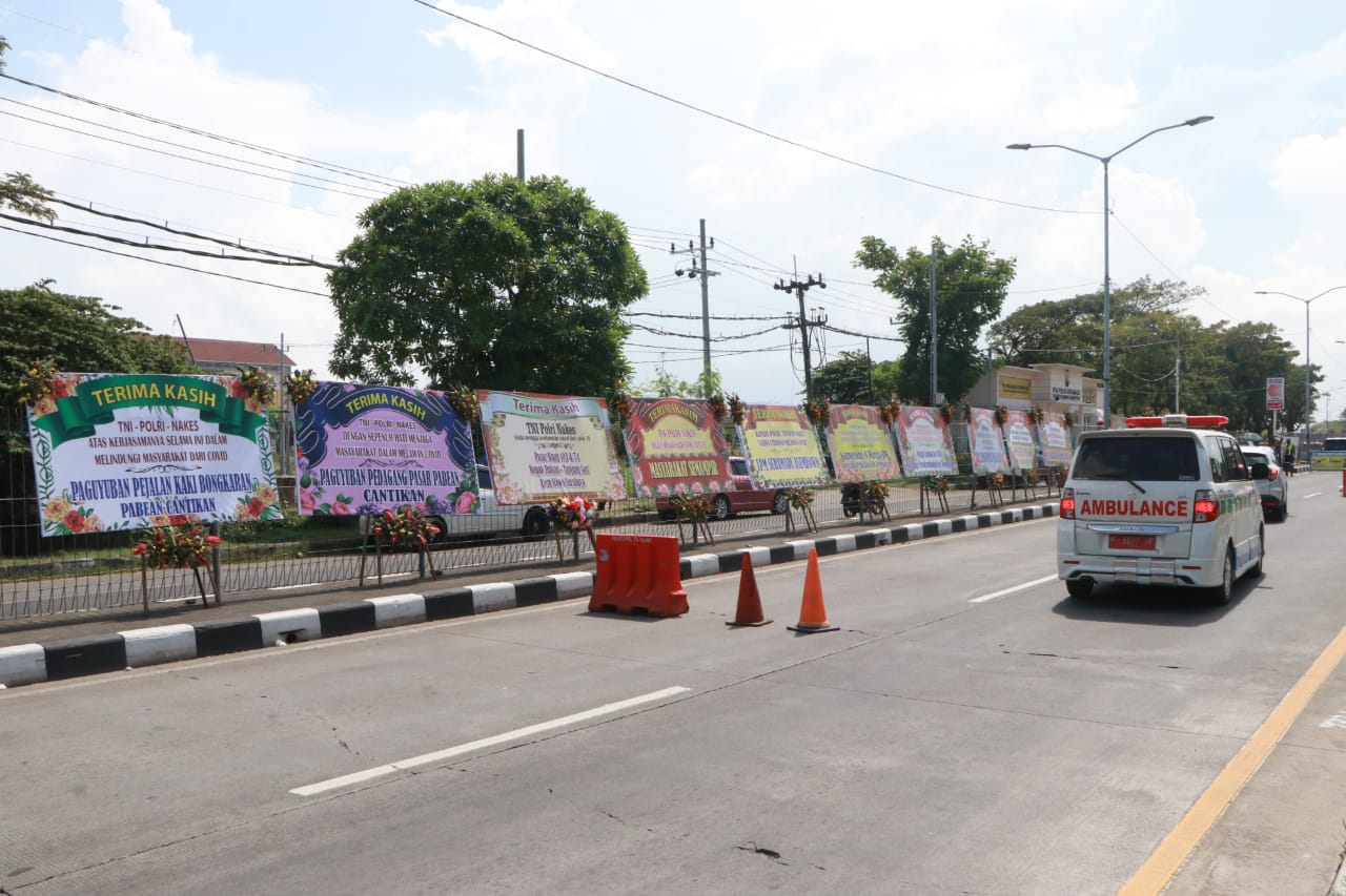 Kabid Humas Polda Jatim, Kombes Pol Gatot Repli Handoko mengucapkan terimakasih atas dukungannya dari masyarakat yang disampaikan melalui karangan bunga, yang di pasang di pos penyekatan.