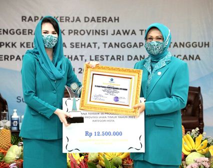 Dua penghargaan yang membanggakan warga Kota Pasuruan ini diserahkan secara langsung oleh Ketua Tim Penggerak (TP) PKK Provinsi Jawa Timur, Arumi Bachsin Emil Dardak, pada acara Rakerda TP PKK Provinsi Jawa Timur di Ruang Rapat TP PKK Provinsi Jawa Timur