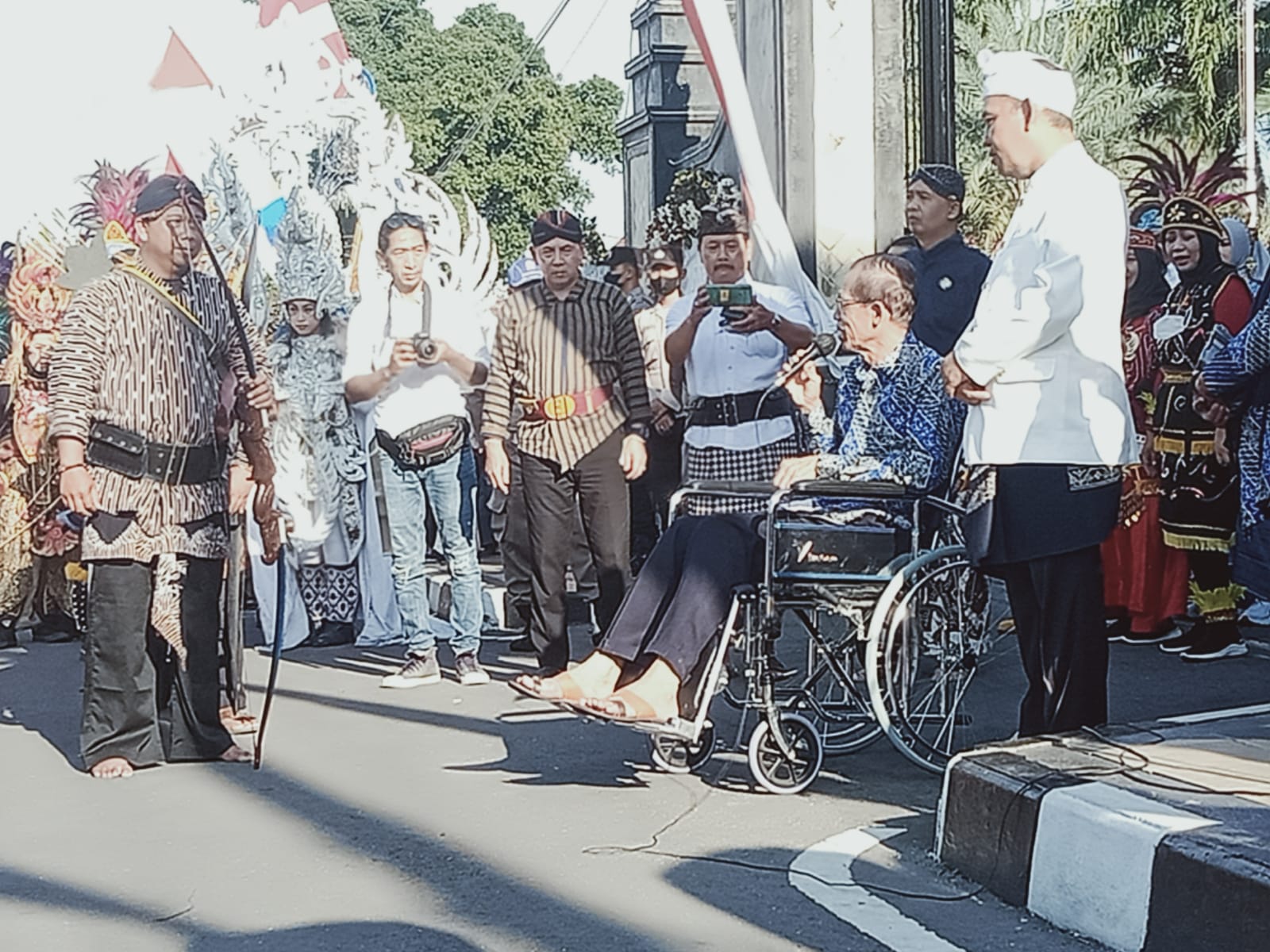 “Mari kita contoh semangat bapak kita satu ini. Walaupun naik kursi roda, beliau tetap hadir di tengah masyarakat,” tandasnya.