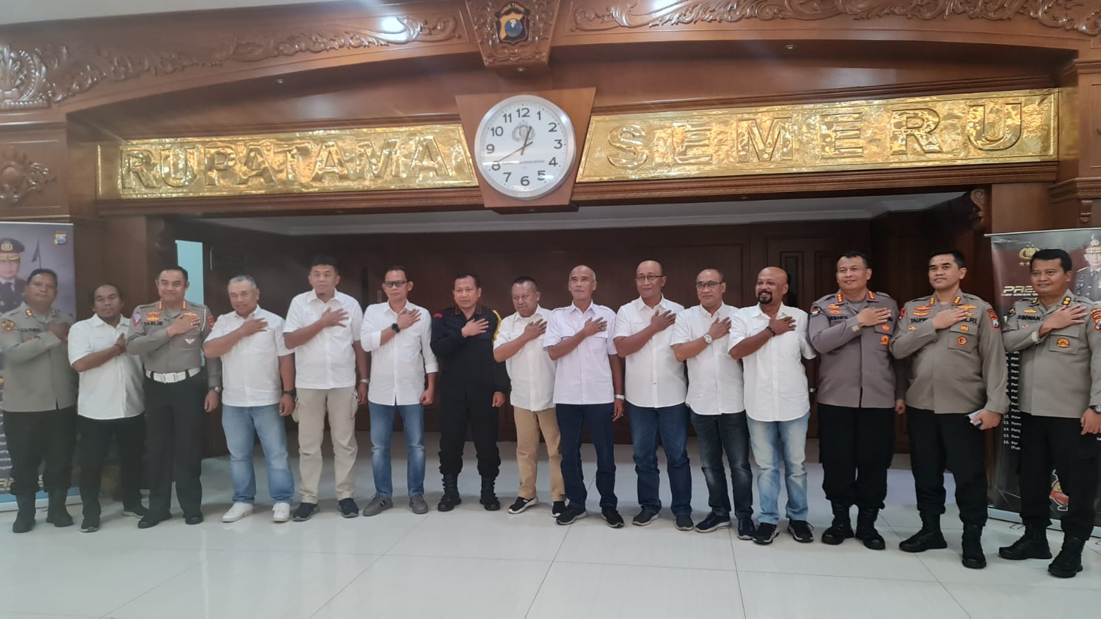 Lutfill Hakim yang juga ketua PWI Jatim, saat bertemu dengan orang nomor satu di Kepolisian Jawa Timur didampingi pengurus, mulai dari wakil ketua, sekretaris, bendum dan SIWO (Seksi wartawan Olahraga).