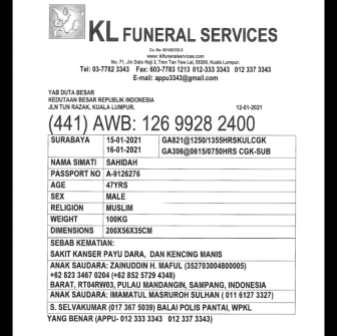 Pemulangan jenazah bernama Sahidah 47 asal Desa Mandangin Kecamatan Sampang dan Saturi 46 Desa Tamberu Daya di fasilitasi oleh BP2MI
