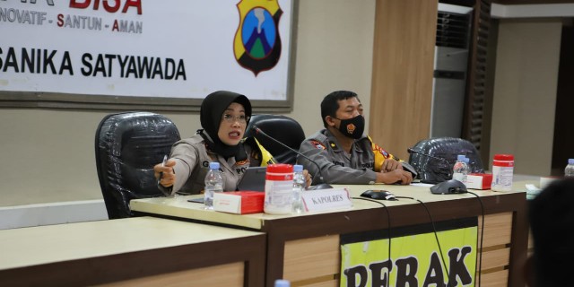 Surabaya – Kapolres Pelabuhan Tanjung Perak, AKBP Ganis Setyaningrum pimpin pelaksanaan analisa dan evaluasi (Anev) mingguan, di Mako Polres Tanjung Perak ruang Rupatama Sanika Satyawada, pada hari Sabtu, (16/01/2021).