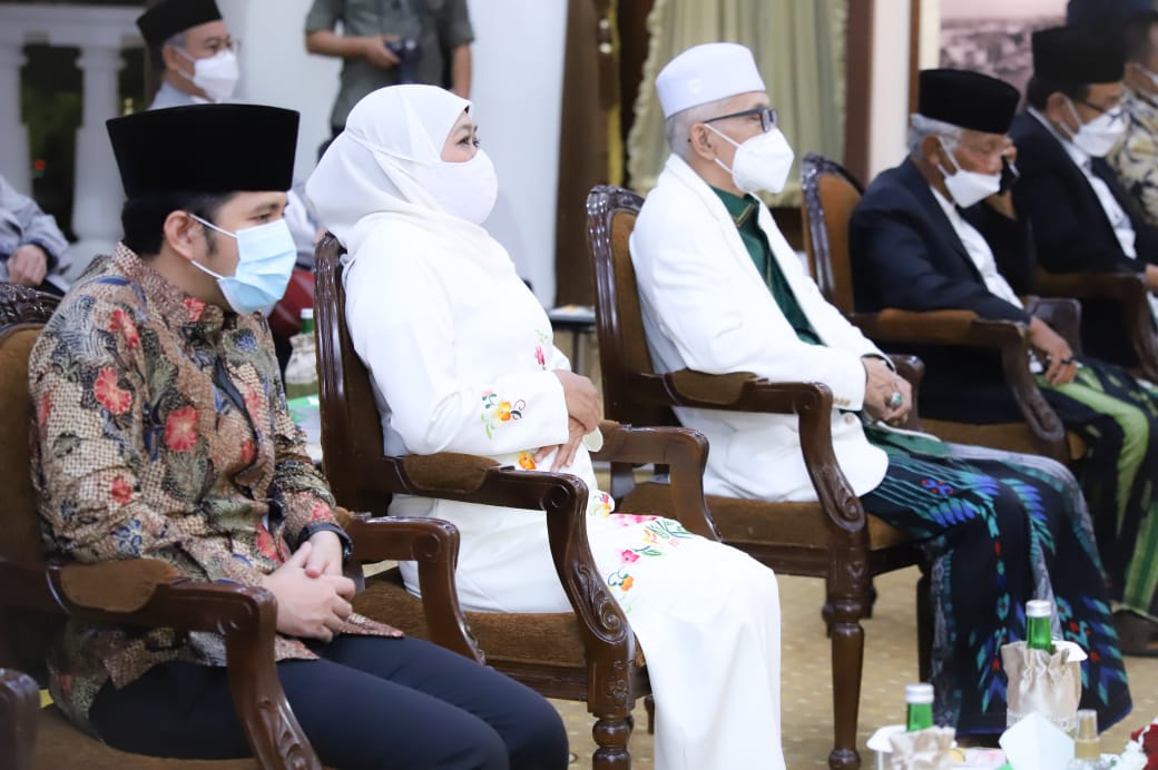 Surabaya – Gubernur Jawa Timur, Khofifah Indar Parawansa turut menghadiri Pengukuhan dan Ta’aruf Dewan Pimpinan Majelis Ulama Indonesia (MUI) Jawa Timur beserta Perangkat Organisasi Masa Khidmat 2020-2025 di Gedung Negara Grahadi Surabaya, Senin (15/2) malam.