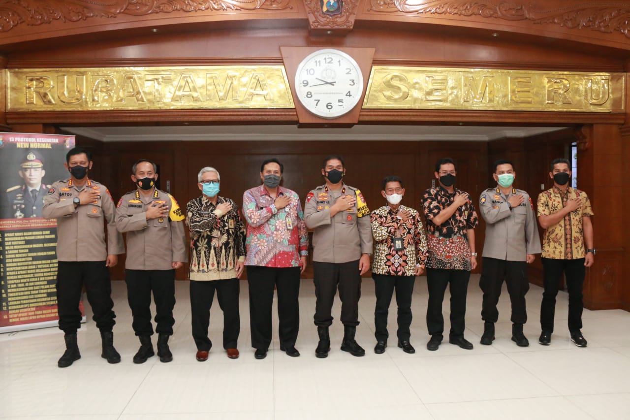 Surabaya – Wakapolda Jawa Timur Brigjen Pol Slamet Hadi Supraptoyo, Jumat (16/4/2021) pagi, menerima audiensi dari Ditjen Pajak Provinsi Jatim di Gedung Tribrata lantai 2 Mapolda Jawa Timur.