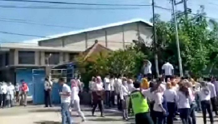 MADIUN – Ratusan karyawan perusahaan PT. Karya Mitra Budi Sentosa (KMBS) yang terletak di Jalan Raya Pilangkenceng, Desa Kedungrejo, Kecamatan Pilangkenceng, Kabupaten Madiun, Jawa Timur, melakukan aksi mogok kerja serentak dan bergerombol di sepanjang sekitar jalan depan pabrik. Rabu, 16 Juni 2021.
