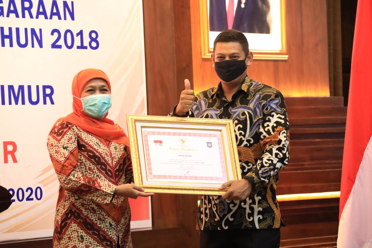 KEDIRI-Prestasi membanggakan kembali ditorehkan oleh Pemerintah Kota Kediri. Jumat (16/10), Walikota Kediri Abdullah Abu Bakar menerima piagam penghargaan atas prestasi Penyelenggaraan Pemerintah Daerah dari Kementerian Dalam Negeri yang diserahkan oleh Gubernur Jawa Timur, Khofifah Indar Parawansa, di Gedung Negara Grahadi Surabaya. Pemerintah Kota Kediri mendapat skor 3,4198 dengan status kinerja sangat tinggi berdasarkan Laporan Penyelenggaraan Pemerintah Daerah (LPPD) tahun 2018. Skor yang diperoleh Kota Kediri ini mengalami peningkatan yang signifikan, dimana pada sebelumnya memperoleh skor 3,2769.