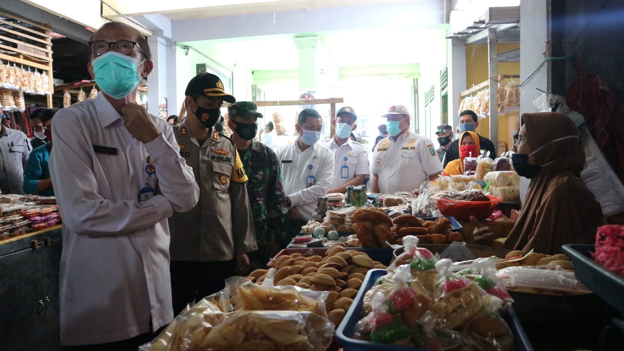 MAGETAN – Bupati Magetan Suprawoto, didampingi Sekretaris Daerah (Sekda) Kabupaten Magetan, dan Kapolres Magetan, bersama instansi terkait, melakukan inspeksi mendadak (Sidak) setelah adanya lonjakan harga kebutuhan pokok, di Pasar Sayur Magetan. Lonjakan harga tersebut terjadi, menjelang Natal dan Tahun Baru 2021, lantaran stok dari pengepul mulai menurun. Rabu (16/12/2020).