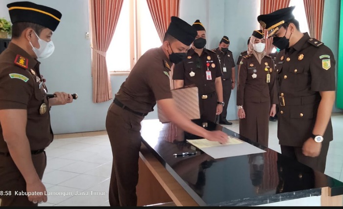Acara pelantikan dan sertijab dipimpin langsung oleh Kajari Lamongan Agus Setiadi SH MH dengan dihadiri para kasi serta pejabat Eselon V dengan tetap memperhatikan protokol kesehatan yang berlaku.