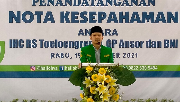 Hal ini berlaku setelah Ketua GP Ansor Kabupaten Kediri melakukan penandatangan nota kesepahaman (MoU) bersama Indonesia Healthcare Corporation Group RS HVA Tulungrejo, dan BNI Cabang Area Kediri, Rabu, 15 Desember 2021.