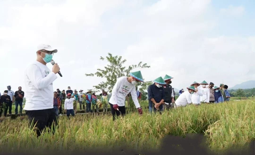 Dari lahan milik anggota Gapoktan Sejahtera yang tergolong sebagai keluarga fakir miskin dan terdampak pandemi Covid-19, para petani milenial berhasil menanam padi dengan system pertanian organik.