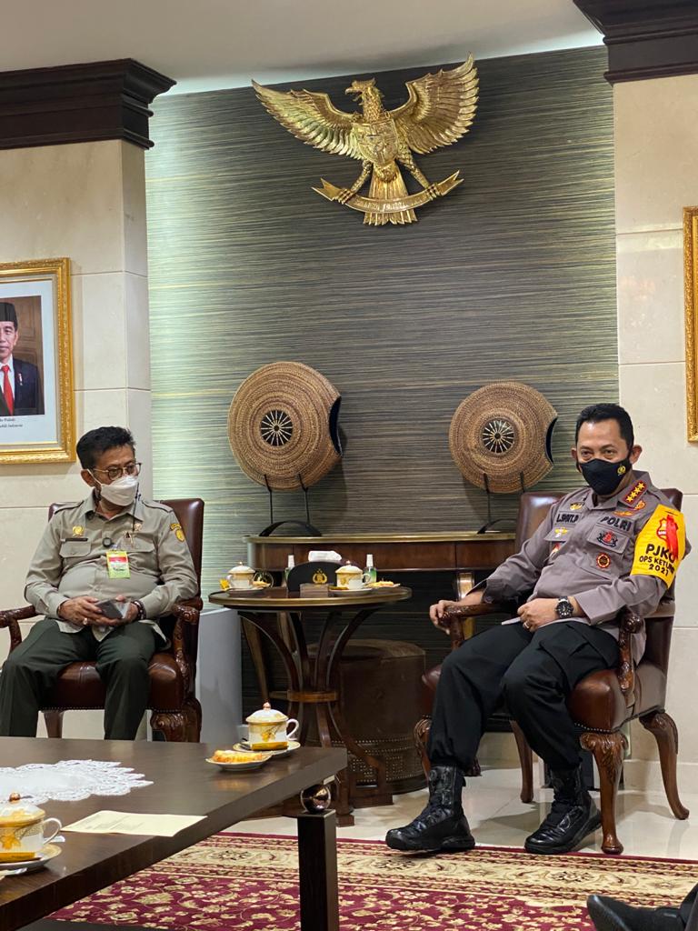 Jakarta—- Kapolri Jenderal Listyo Sigit Prabowo menerima audiensi Menteri Pertanian Syahrul Yasin Limpo bersama jajaran di Ruang Rapat Kapolri, Mabes Polri, Jakarta, Senin (17/5).