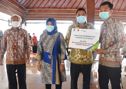 Jatim.Siberindo (IM.com) – Sebanyak 57.325 orang pekerja yang terdaftar sebagai peserta aktif BPJS Ketenagakerjaan di Kabupaten Mojokerto telah menerima Bantuan Subsidi Upah (BSU). Gaji tambahan itu diserahkan secara simbolis oleh Bupati Mojokerto Pungkasiadi bersama Kepala Cabang BPJS Ketenagakerjaan Mojokerto Dwi Endah Aprilistyani di Pendopo Graha Majatama, Kamis (17/9/2020).