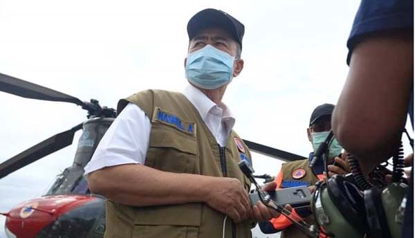 PADANG – Terhalang cuaca buruk, penyaluran Alat Pelindung Diri (APD) ke Kabupaten Dharmasraya menggunakan helikopter batal, Rabu (16/9/2020). Rencananya, helikopter pinjaman Badan Nasional Penanggulangan Bencana (BNPB) jenis Chinook yang mengangkut APD juga dikendarai Wakil Gubernur Sumbar, Nasrul Abit.