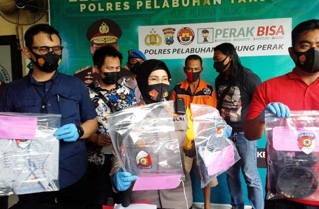 Kapolres mengungkapkan, bahwa pelaku ini berhasil dibekuk Satreskrim Polres Pelabuhan Tanjung Perak dalam kurun waktu kurang dari 10 jam setelah kejadian. Pelaku diamankan di kampung halamannya Madura.