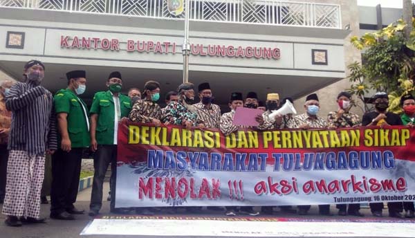 Koordinator aksi, Ahmad Mashuri mengungkapkan, bahwa deklarasi tolak aksi anarkisme yang dilakukan ini mengatasnamakan atas seluruh masyarakat Indonesia khususnya masyarakat Tulungagung.