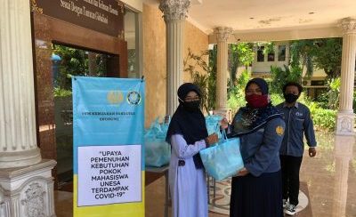 Tim Pengabdian Kepada Masyarakat Kebijakan Fakultas Ekonomi bekerja sama dengan Himpunan Mahasiswa Jurusan Ilmu Ekonomi (HMJ IE) melakukan penyaluran dana PKM sebagai bantuan sosial dalam bentuk bantuan kebutuhan pokok, dilakukan dalam rangka memenuhi kebutuhan Mahasiswa Unesa yang terdampak Covid–19.