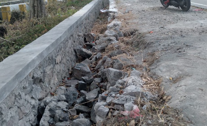Bangunan TPT Tanpa Papan Proyek di Jalan Raya Karangtinggil Pucuk, Ambrol 5 Meter