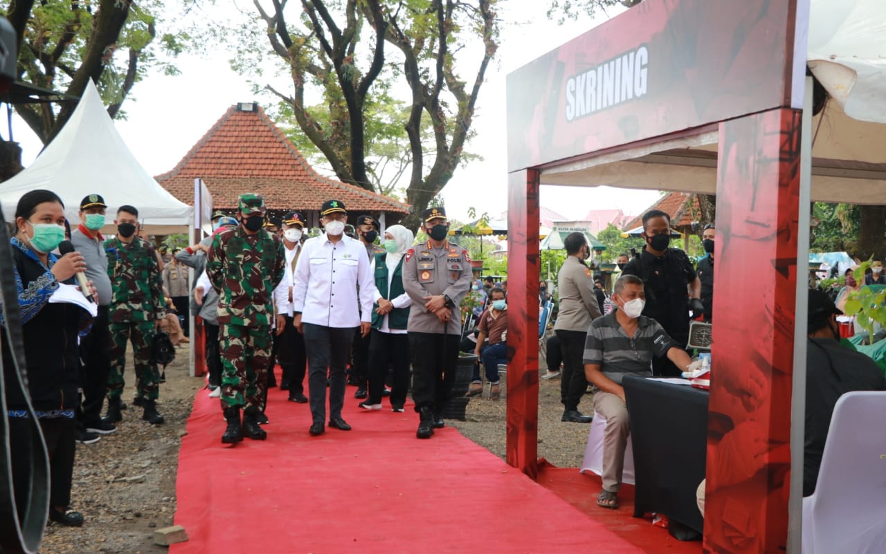 Panglima TNI Marsekal Hadi Tjahjanto, Kapolri Jenderal Polisi Listyo Sigit Prabowo, Menteri Kesehatan (Menkes) Budi Gunadi Sadikin, dan Kepala BNPB Letjen Ganip Warsito, didampingi Forkopimda Jatim, Gubernur Jatim Khofifah Indar Parawansa, Pangdam V/Brawijaya Mayor Jenderal TNI Suharyanto dan Kapolda Jatim Irjen Pol Nico Afinta,bserta Pejabat Utama Polda Jatim, melakukan pengecekan jalannya vaksinasi yang berlangsung di Ngerowo Bening, Madiun.