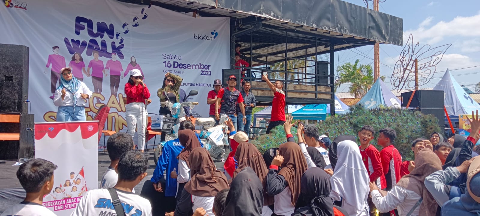 Magetan | jatim.siberindo.co – Hampir 2 ribu warga Magetan yang sebagian emak-emak dan pelajar mengikuti acara jalan santai “Fun Walk Cegah Stunting” di Terminal Futsal, MT Haryono Magetan, Sabtu (16/12/2023).