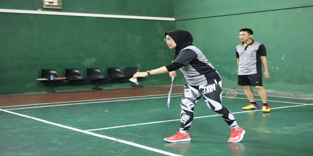 Surabaya – Kapolres Pelabuhan Tanjung Perak, AKBP Ganis Setyaningrum, melaksanakan kegiatan olahraga bulu tangkis di lapangan Badminton Pelindo III, Selasa (19/1/2021) pagi.