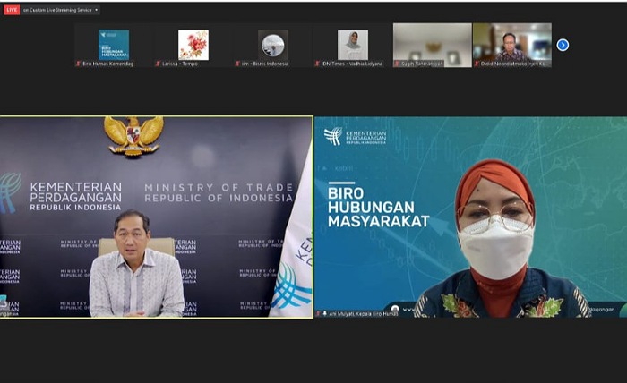 Hal tersebut disampaikan Mendag Lutfi dalam “Konferensi Pers Outlook Perdagangan 2022” yang digelar secara virtual hari ini, Selasa (18/01). Turut hadir sebagai narasumber yaitu Ketua Kamar Dagang Indonesia (Kadin) Arsjad Rasjid dan Guru Besar Fakultas Ekonomi Universitas Indonesia Prof. Dr. Muhammad Ikhsan, SE., MA.