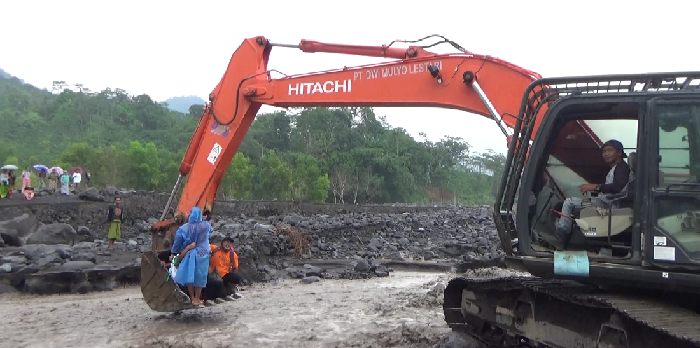 “Alhamdulillah senang banget bisa dievakuasi meskipun gemetar saat naik ekskavator. Karena banjir tak segera surut sehingga kita gak bisa pulang,” ujar tenaga medis Puskesmas Candipuro, Dewi.