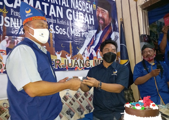 KEDIRI, Anggota DPRD Kabupaten Kediri dari Fraksi Partai NasDem, Khusnul Arif, S.Sos, mendapatkan kejutan dari Pengurus DPC dan DPRt se Kecamatan Gurah, Rabu, 19 Mei 2021 sore.