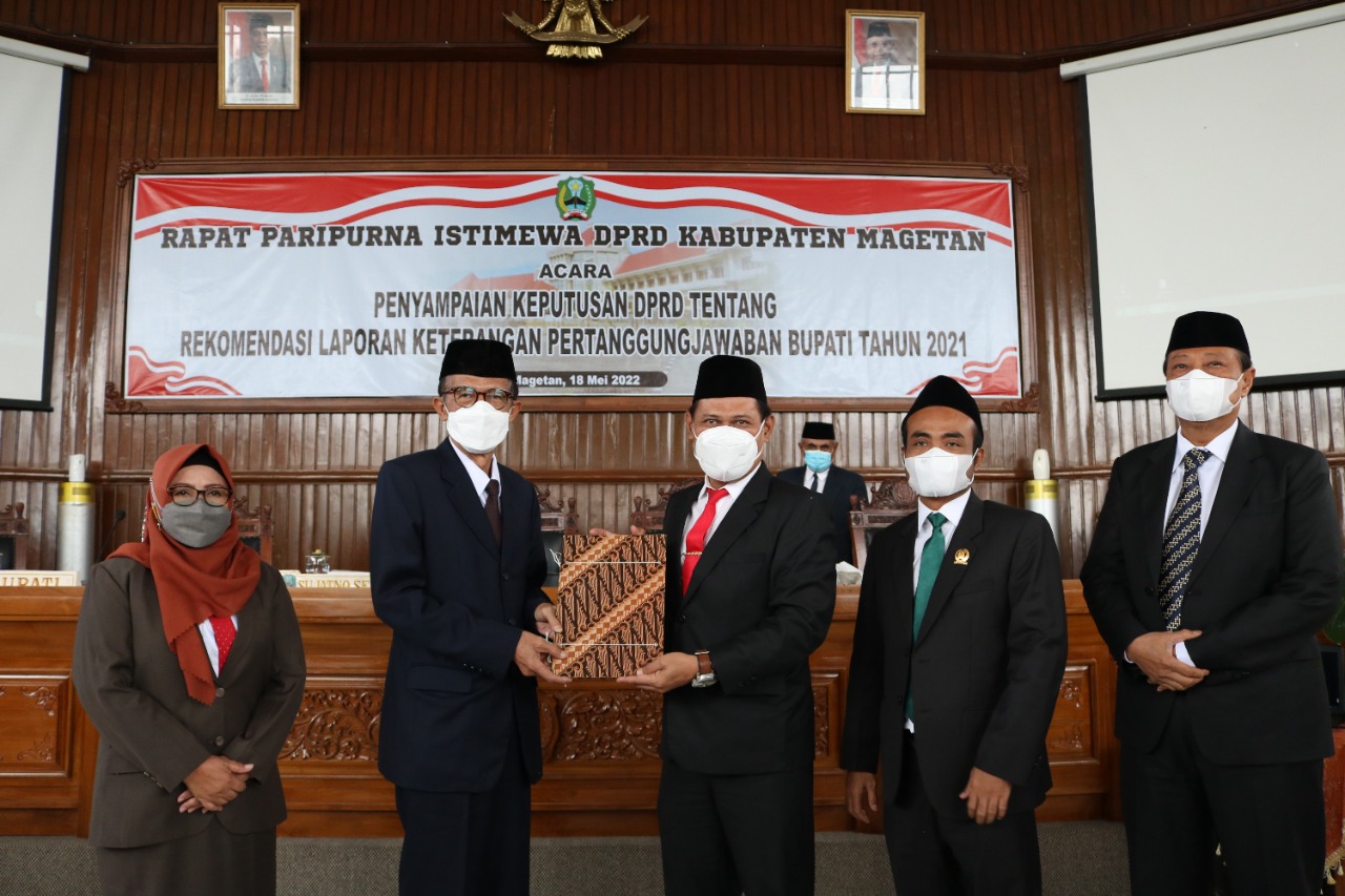 “Keterkaitan rekomendasi, hari ini kita sampaikan dan serahkan kepada Bupati,” ungkap Ketua DPRD Magetan, Rabu (18/5).