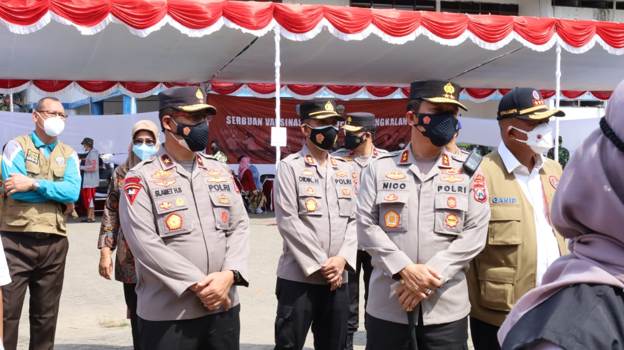 Usai melakukan pengecekan pasukan, rombongan melanjutkan kunjungan ke Angkutan Sungai Danau dan Penyeberangan (ASDP) Kamal, meninjau pelaksanaan Serbuan vaksinasi.