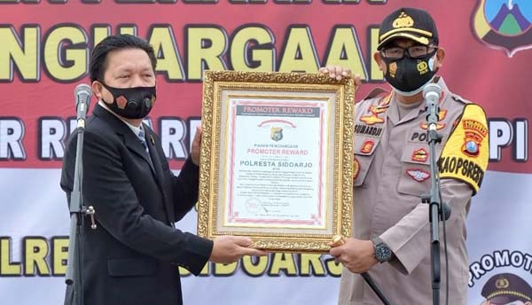 SIDOARJO – Upaya yang telah dilakukan Polresta Sidoarjo penanganan Covid-19 selama ini layak mendapatkan promoter reward, Senin (19/10/2020). Kali ini apresiasi promoter reward diperoleh dari Lembaga Kajian Strategis Kepolisian Indonesia (LEMKAPI).