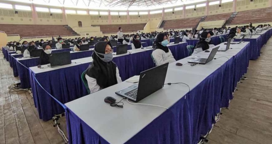 MAGETAN – Sebanyak 2987 peserta yang telah lolos seleksi administrasi, mengikuti tes Seleksi Kompetensi Dasar (SKD) CPNS dan PPPK Non Guru, bertempat di GOR Ki Mageti, Senin (18/10/2021).