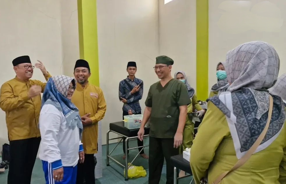 Bupati Magetan, Nanik Endang Rusminarti, meninjau langsung pelaksanaan khitanan massal usai mengikuti senam Ling Tien Kung di Alun-Alun pusat kota.