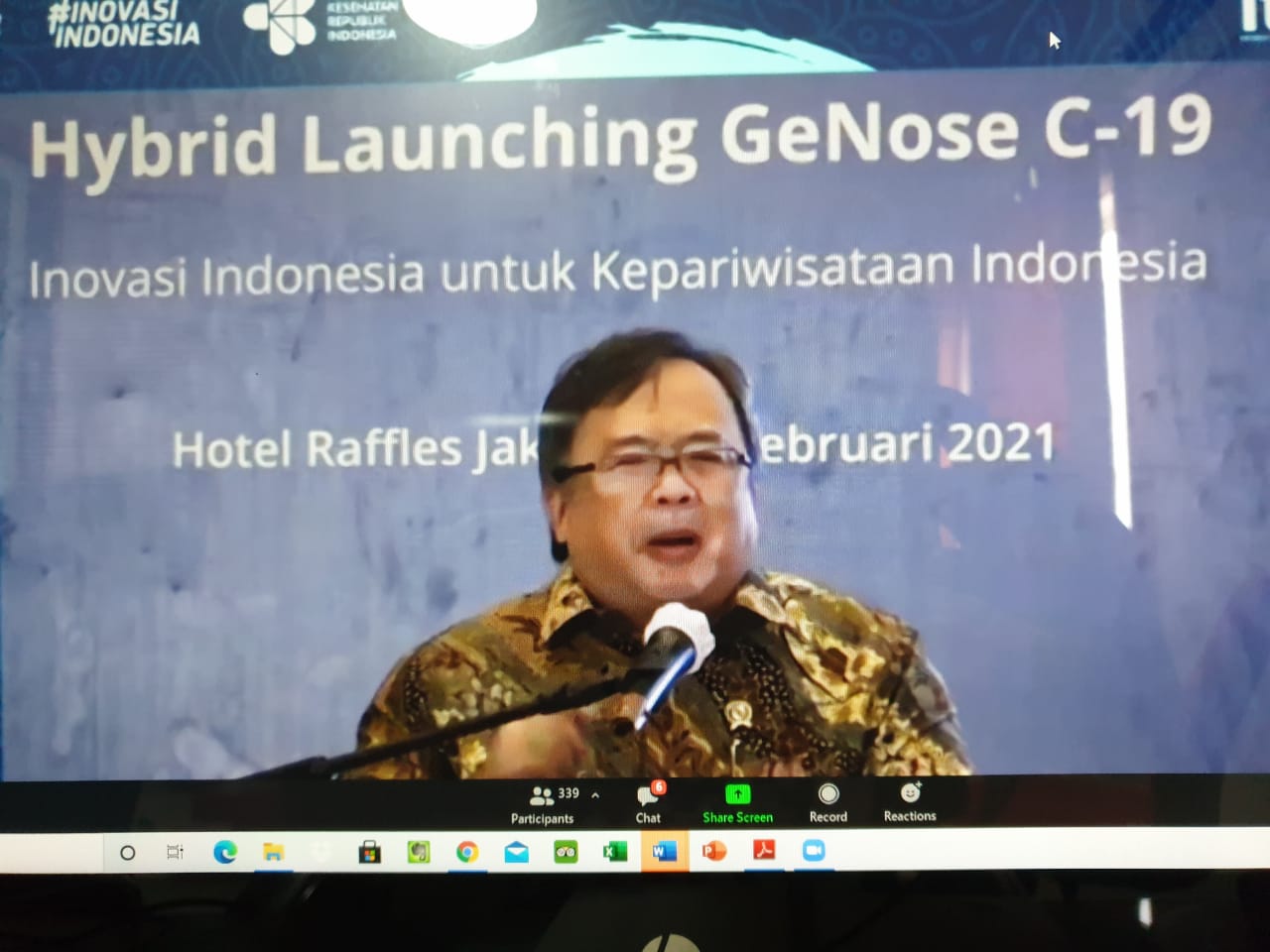 “Sektor pariwisata menggunakan GeNose C19 untuk hidupkan industry pariwisata, untuk pulihkan ekonomi negeri, karena GeNose C19 bisa lakukan skrining Covid-19 secara massif dengan cepat, nyaman dan harga terjangkau,” demikian dikatakan Bambang Brodjonegoro yang secara resmi melaunching penggunaan GeNose C19 Inovasi Indonesia untuk Kepariwisataan Indonesia, yang diselenggarakan oleh Indonesia Tourism Forum bekerjasama dengan ACCOR Group, dan didukung oleh Kementerian Riset dan Teknologi, Kementerian Pariwisata dan Ekonomi Kreatif, Kementerian Kesehatan dan Kementerian Perdagangan, di Hotel Raffles Jakarta (19/2).