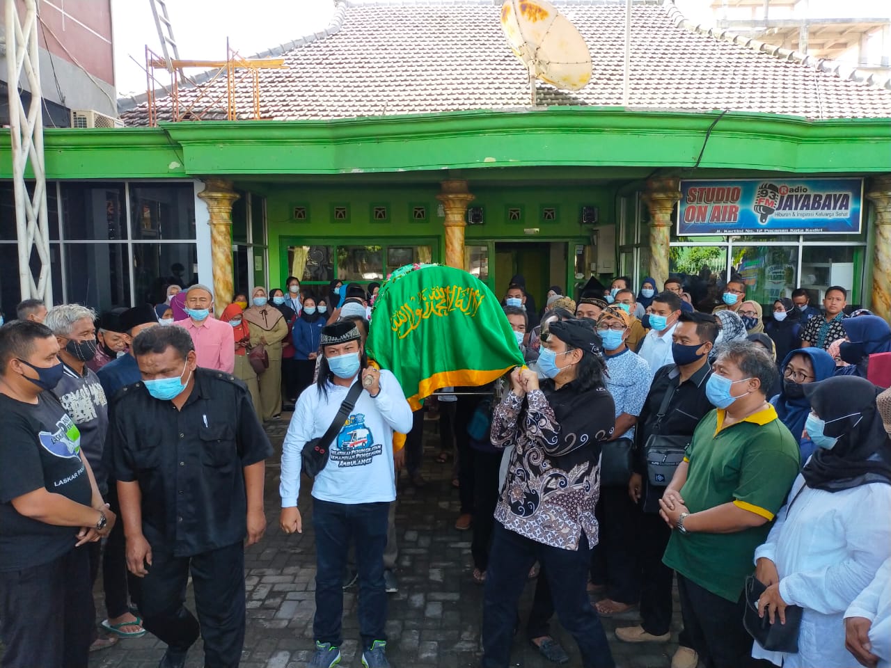 FOTO 1 : Jenazah Hartingah APMD, Anggota DPRD Kota Kediri Kota, saat akan diberangkatkan dari rumah duka, Jalan Kartini 12, Kota Kediri, Jawa Timur.
