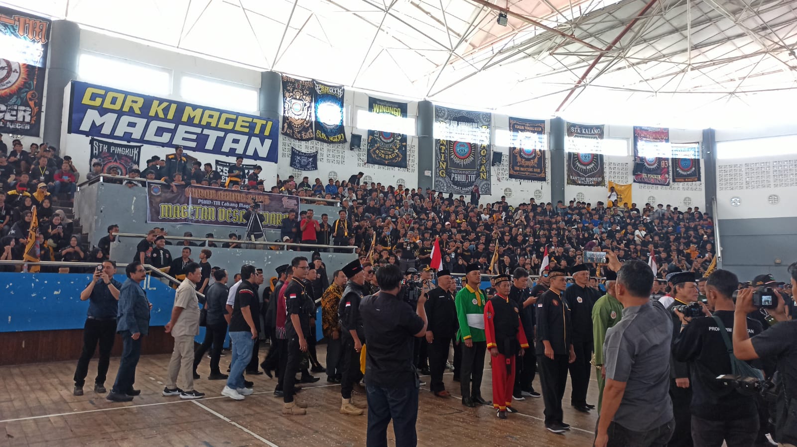 Ketua Umum PSHWTM, H.R. Agus Wijono Santoso, hadir langsung bersama Ketua Cabang PSHWTM Magetan, Budiono, jajaran Forkopimda, serta perwakilan dari 13 perguruan pencak silat.