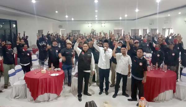 LAMONGAN – Anggota Fraksi PDI Perjuangan DPR RI Nasirul Falah Amru mendeklarasikan dirinya untuk memenangkan salah satu pasangan Calon Bupati dan Wakil Bupati Lamongan Kartika-Saim (KarSa). Deklarasi dipimpin langsung oleh pria yang juga menjabat bendahara PBNU di rumah makan Aqillah Kecamatan Deket, Kabupaten Lamongan, Senin (19/10/20) siang.